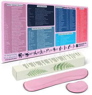 Excel Cheat Sheet Mouse Pad Set ^^ 3-Piece XXL Ergonomic Desk Mat with Wrist Rest for Office & Gaming(Blush)