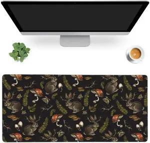 Desk Mat,Mystical Hare with Mushroom Gaming Mouse Pad,XXL Extended Mouse Pad Mat for Office,Computer,Keyboard with Non-Slip Base Stitched Eges Mousepad 35.4x15.75 inch