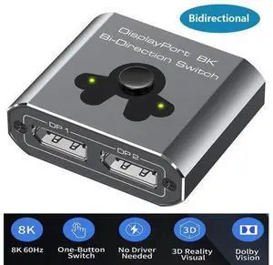 2 Port DisplayPort Switch Bidirectional, 8K Bi-Direction Display Port Switch 2 in 1 Out / 1 in 2 Out Manual Switch DP Switcher Selector Box Support 8K@60Hz 4K@120Hz for PC/Laptop/Game Console eokCXOY