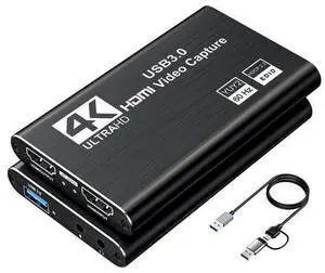Video Capture Card, Audio Video Capture Card, USB 3.0 Capture Card 4K HDMI Loop-Out, 1080P 60FPS/2K 30FPS Video Game Capture for Streaming Works for PS5/Switch/Camera/PC/OBS(Black)
