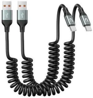 Coiled USB A to USB C Cable for Car 6FT, 2Pack USB C Cable Fast Charging, USB Type C Cable Compatible with iPhone 17/16/15 Pro Max/Samsung Galaxy S20 S10 S9 S8 Plus Note 10 9 8 and More USB C Devices