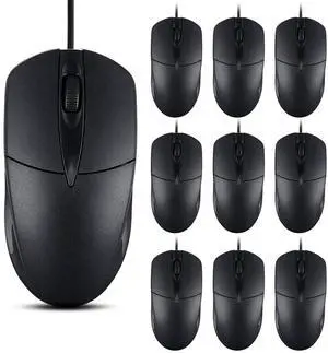 SUNYIWJIE 10 PCS Black Wired Computer Mouse Bulk USB 1000 DPI 3 Button Corded Mouse with Home Office Noiseless Simple USB Mouse for Computer Laptop Desktop PC