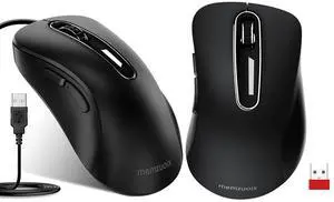 memzuoix 2.4G Wireless Mouse + USB Wired Mouse for Laptop, Desktop, PC, MacBook- 2 Pack (Black)