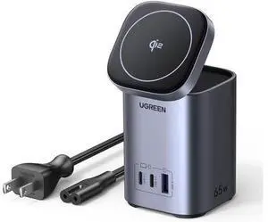 UGREEN Nexode 65W GaN Charging Station 3-Port with 15W Qi2 Wireless Charger Stand Foldable, Magsafe Charger Station Magnetic Charger Compatible with iPhone 16/15/14/13/12, Galaxy S24, iPad Air, etc