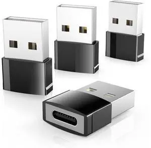 USB to USB C Adapter 4 Pack Type C Female to USB Male Converter Power Charger Cable Adapter Compatible with MagSafe Watch Series 10/SE/Ultra 2 iPhone 16 Plus Pro Max Black