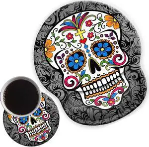 Ergonomic Mouse Pad Wrist Rests Support, Non Slip Mousepads with Gel Cushion Wrist Support,Comfortable Durable Mouse Pads for Home Office Working Pain Relief & Cute Coasters Sugar Skull