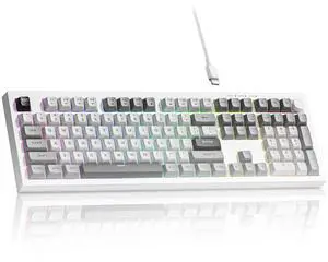 Womier K105 Membrane Gaming Keyboard,RGB Quiet Keyboard for Office, USB Wired,26 Keys Anti-ghosting Computer Keyboard 104 Keys - Gray