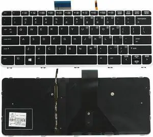 Laptop US Keyboard Backlit Silver For HP Elitebook Folio MP-13U8 752962-001