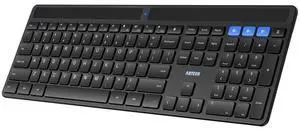 Solar Bluetooth Keyboard, Universal Multi-Device Full Size Wireless Keyboard for Windows iOS Android Computer Desktop PC Laptop Surface Tablet Smartphone Rechargeable Battery