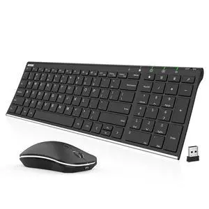 2.4G Wireless Keyboard and Mouse Combo Ultra Compact Slim Stainless Full Size Keyboard and Ergonomic Mouse for Computer/Desktop/PC/Laptop and Windows 10/8/7 Build in Rechargeable Battery