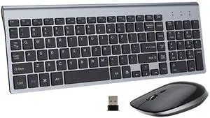FENIFOX Keyboard and Mouse Wireless, USB 2.4GHz Combo Silent Quiet Low Profile Compact Full Size Flat Slim Thin Portable with Number Pad Soft Cover for PC Laptop Computer Office - Black & Grey