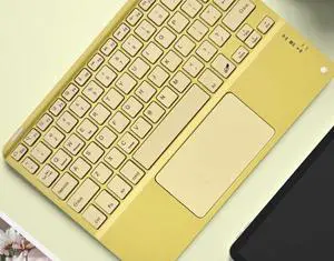 Wireless Bluetooth Keyboard, Ultra Slim Rechargeable Portable Cordless with Touchpad 10 Inch Wireless Keyboard for iOS Android Windows Mobile Phones Laptops Tables (Yellow)