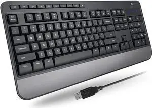 X9 Wired Keyboard - Comfortable Typing - Ergonomic Full Size USB Keyboard with Wrist Rest, Number Pad, Multimedia and 114 Keys - External Computer Keyboard for Laptop, Desktop and Office PC