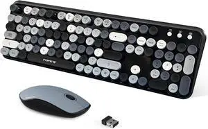Wireless Keyboard and Mouse Combo, Retro Typewriter Keyboard with Round Keycaps, 2.4GHz USB Cute Wireless Keyboard Mouse for Computer, Desktop, Laptop and Computer (Black-Colorful)