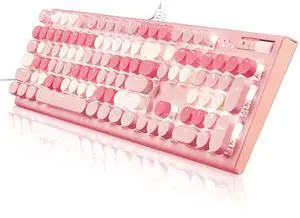 Wireless Keyboard and Mouse Combo, Cute Colorful 104 Keys Typewriter Retro Round Keycaps Keyboard for PC Laptop,Desktop,Windows, Home and Office Keyboards(Black Pink)