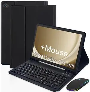 Keyboard Case for Samsung Galaxy Tab A9 Plus (SM-X210/X215)/A11 Plus (SM-X230/X315) 11.0,Rechargable Detachable Keyboard Cover for Tablet A9+ 2023/A11+ 2025 5G + Mouse (Black)