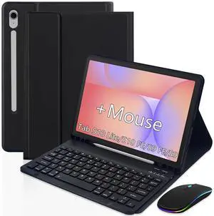 Keyboard Case for Samsung Galaxy Tab S10 Lite/S10 FE/S9 FE 10.9 inch /S9 11",Rechargable Detachable Keyboard with Type-C Charging Port Cover with Mouse (Black)