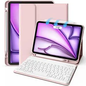 JKSML Keyboard Case for iPad Air M3 2025/11 inch M2 2024/iPad Air 10.9 inch 5th Gen 2022/4th Gen 2020, Detachable Wireless Bluetooth Keyboard Case with Pencil Holder, Pink