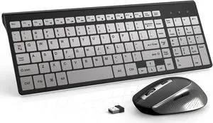 Wireless Keyboard Mouse, J JOYACCESS Sleek and Ergonomic 2.4G Wireless Keyboard and Mouse Set,Portable and Comfortable for Travel Compatible withComputer/Laptop/Windows/Mac-Black/Silver