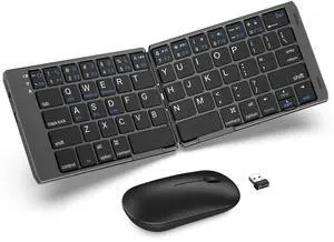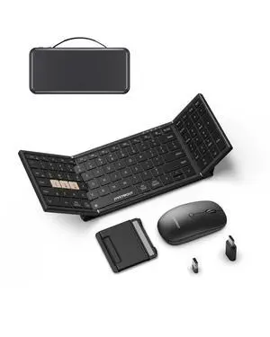 JYKEYMOUT Foldable Keyboard and Mouse Combo, Bluetooth+USB A+C(3 in 1) Wireless Connection, Portable Design, Full-Size Rechargeable Folding Keyboard and Silent Mice for Business Travel/Office(Black)