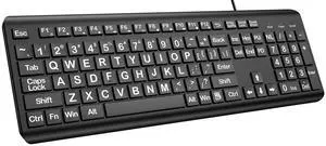EDJO Large Print Computer Keyboard, Wired USB Full Size Quiet Keyboard with 4X Oversized Print Letters for Visually Impaired Low Vision Individuals Easy to See and Type for PC, Laptop,Windows