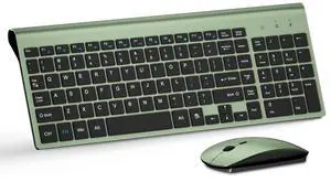 Ultra Slim Wireless Keyboard and Mouse Combo, Silent Compact Keyboard Mouse Set Green Black