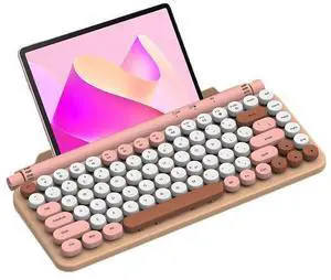 Ajazz AF84 Wireless Membrane Silent Typewriter Keyboard, Bluetooth/2.4G Dual-Mode Connection, Cute Retro Aesthetic Design with Integrated Stand for Tablet, Phone, PC and Win/Mac/Android Pink