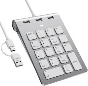 Cbcuyle Wired Numeric Keypad with USB A/USB C, Multifunction Keys Number Pad with 3 Additional USB 2.0 Ports, 18 Keys, 15 Ergonomic Programmable Numeric Pad for Laptops, Notebooks, and Desktops