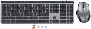 New Wireless Bluetooth Keyboard and Mouse, Dual Bluetooth and USB Full Size Rechargeable Keyboard with 4 DPI Ergonomic Mouse for Laptop/PC/Computer/iPad, Mac/Windows, C9990 Black Gray