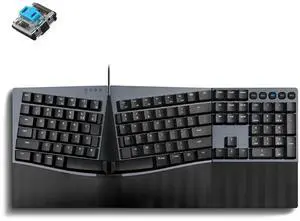 Perixx PERIBOARD-535BL [Firmware Updated] Wired Ergonomic Mechanical Keyboard - Full-Size - Low-Profile Blue Clicky Switches - Compatible with Windows and macOS
