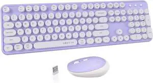 Wireless Keyboard and Mouse Combo, MOWUX Full Size Typewriter Retro Round Computer Keyboard, Cute Optical Mouse Wireless, Plug and Play, for Laptop, PC, Computer- Purple Gradient