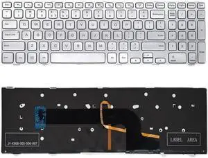 Laptop Replacement US Layout Backlit Keyboard for Dell Inspiron 15 7537 7000 P36F Silver 15-7000 Series