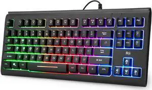 Rii Computer Keyboard, Wired USB Compact Keyboard with RGB Backlit,Silent Keystroke for Home Office,Working or Primer Gaming, Compatible with Laptop,PC,Windows,Mac