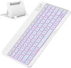 OMOTON Bluetooth Keyboard for Tablet/Android/Windows/iOS, with 7 Colors Backlight Rechargeable Wireless Keyboard Compatible with Galaxy Tab A9+/A9+ Plus/S9/S9 Plus/S9 FE, Pink