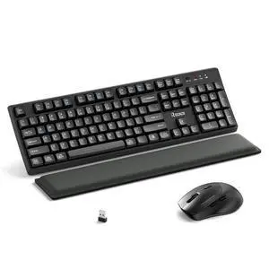 Wireless Keyboard and Mouse Combo with Wrist Rest, 2.4G Full-Sized Keyboard and Mouse Cordless, 3 DPI Adjustable Silent Mouse, Dual-System Keyboard for Computer/Laptop/Windows/Mac (Black)