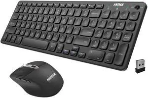 Arteck 2.4G USB Wireless Keyboard and Mouse Combo Ultra Slim Compact Keyboard and Ergonomic Mouse for Computer Desktop PC Laptop and Windows 11/10/8/7 Build in USB-C Rechargeable Battery