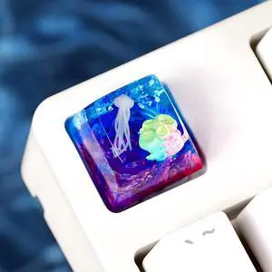 Jellyfish Artisan Keycap Rainbow Coral R1 SA Profile Custom Sea Creature Keycaps 1U ESC Handmade Gaming Sea Resin Key Cap Cherry MX Switch Compatible Mechanical Keyboard Jellyfish Lover Gift