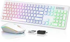 Wireless Keyboard and Mouse Combo, RGB Backlit, Rechargeable & Light Up Letters, Full-Size, Ergonomic Tilt Angle, Sleep Mode, 2.4GHz Quiet Keyboard Mouse for Mac, Windows, Laptop, PC, Trueque(Purple)