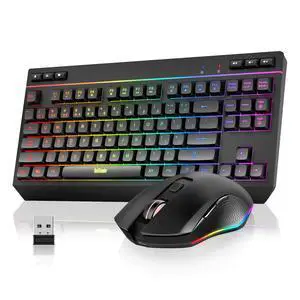 K20 TKL Wireless Keyboard and Mouse Combo, Adjustable RGB Backlit Rechargeable Battery, Compact Layout Keyboard with Dedicated Multimedia Keys + Optical Mice for PC/Laptop(Black)