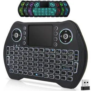 2.4GHz Backlit Mini Keyboard Touchpad Mouse, Mini Wireless Keyboard with Touchpad and Multimedia Keys for Android TV Box Smart TV HTPC PS3 Smart Phone Tablet Mac Linux Windows OS (7 Colors)