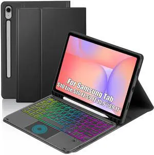 Touchpad Keyboard Case for Samsung Galaxy Tab S10 Lite/S10 FE/S9 FE 10.9 inch /S9 11" 2025/2023 Tablet, Rainbow Backlight Type-C Charging TrackPad Keyboard with Pencil Holder (Black)