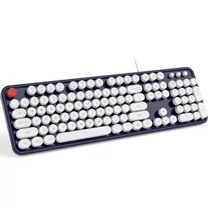 Wired Computer Keyboard, Retro Typewriter Keyboard Full Size Round Key, Plug and Play USB Keyboard for PC, Laptop, Desktop, Windows (Dark Blue)