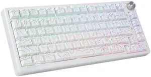HUO JI 75% Wireless Mechanical Gaming Keyboard, Bluetooth/2.4G/USB Wired, Creamy Sound, RGB Backlit, Hot Swappable Pre-lubed Linear Switches, Volume Knob, Custom Gasket Structure for Win/Mac, White