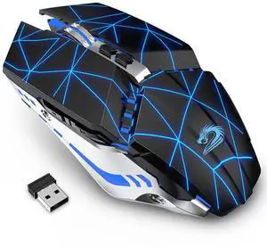 T12 Wireless Gaming Mouse Rechargeable, 2.4G Silent Optical Wireless Computer Mice with Changeable LED Light for Laptop PC, 7 Buttons, 3 Adjustable DPI (Starry Black)