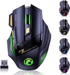 Rechargeable 2.4G Wireless Gaming Mice with USB Receiver and RGB Colors Backlit for Laptop,Computer PC and MacBook (600 mAh Lithium Battery)- Black