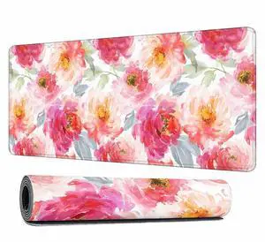 Y YIHANGBEST Watercolor Peonies Mouse Pad for Desk Pink Flower with Blue Leaves Large Gaming Mousepad for Home,Office,Computer,Keyboard Mat 35.4"X15.7"