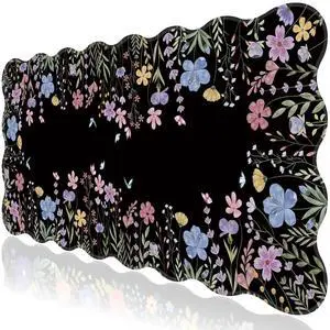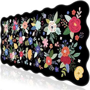 L-SPOUTTO Floral Mouse Pad,Botanical Desk Mat XXL Large Scalloped Black Gaming Mousepad,35.4x15.7in Non-Slip Rubber Base Keyboard Pad Waterproof Desktop Mat for Laptop Computer Game Home Office-Flower