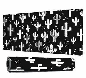 Y YIHANGBEST Black and White Cactus Mouse Pad Monochromatic Wild Plants XL Gaming Mouse Keyboart Mat for Desk,Computer,Office,Home 35.4"X15.7"