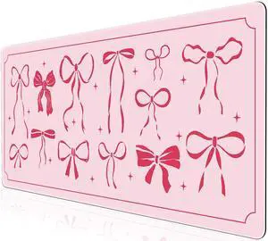 L-SPOUTTO Pink Bow Desk Mat for Keyboard and Mouse,Cute Girly XXL Large Mouse Pad,35.4x15.7in Non-Slip Keyboard Pad Waterproof Desktop Mat for Laptop Computer Work Game Home Office-Pink Ribbon