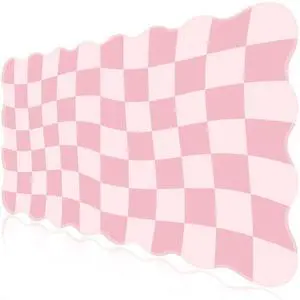 L-SPOUTTO Pink Mouse Pad,Geometric Desk Mat XXL Large Scalloped Gaming Mousepad,35.4x15.7in Non-Slip Rubber Base Keyboard Pad Waterproof Desktop Mat for Laptop Computer Game Home Office-Checkered